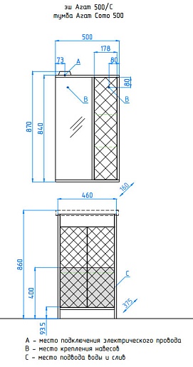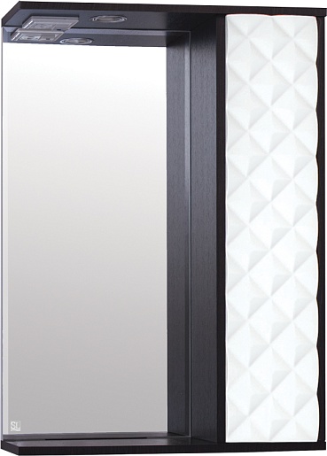 Описание: зеркальное полотно с распашным шкафчиком и нижней полкой. В козырьке встроенный светильник, выключатель с розеткой. Декоративная фрезеровка фасада. Фацет на зеркале, стеклянные полки с еврокромкой и прозрачными полкодержателями. Система "push to open" позволяет открывать дверцы легким нажатием на фасад.