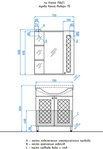 Зеркальный шкаф "Канна 75/С Люкс" — арт. ЛС-00000295