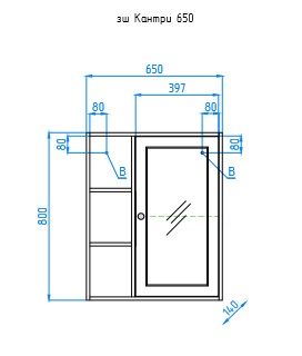 Размеры ШхГхВ: 650х140х800 мм.