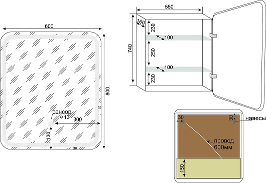 - Материал корпуса/фасада: МДФ / МДФ, зеркало.