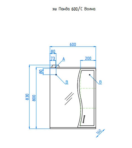 Зеркальный шкаф "Панда 600/С" Волна — арт. ЛС-00000131