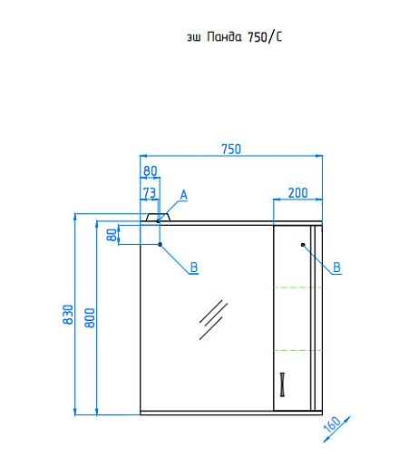 - Зеркальное полотно с распашным шкафчиком и нижней полкой.