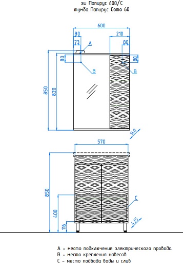 Зеркальный шкаф "Папирус 60/С Люкс", арт. ЛС-00000303