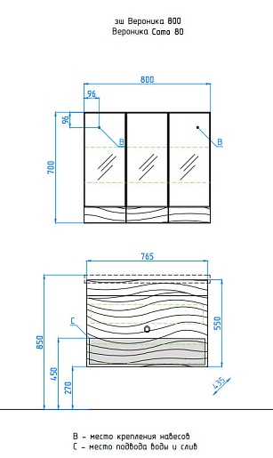 Зеркальный шкаф "Вероника 800" — арт. ЛС-00000057