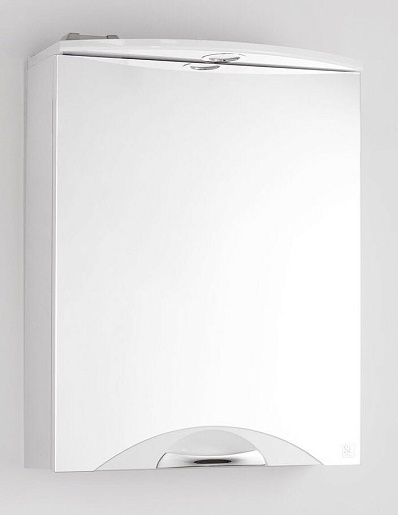 Описание: зеркальный шкаф для ванной с распашной дверцей. Встроенный светильник. Стильная врезная хромированная ручка.