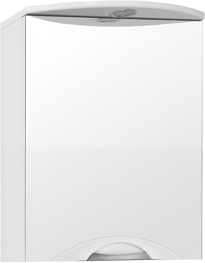 Описание: зеркальный шкаф для ванной с распашной дверцей. Встроенный светильник. Стильная врезная хромированная ручка.