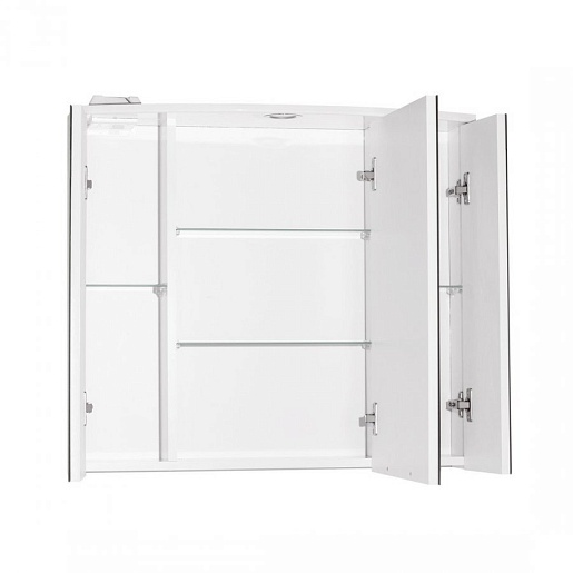 Описание: зеркальный шкаф для ванной с распашными дверцами. Встроенный светильник. Стильная врезная хромированная ручка.