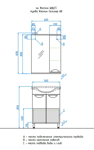 Зеркальный шкаф "Жасмин 600/С", арт. ЛС-00000040
