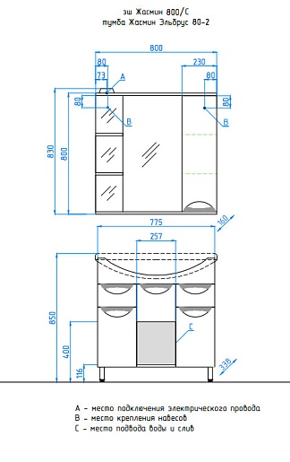 Зеркальный шкаф "Жасмин 800/С" — арт. ЛС-00000044