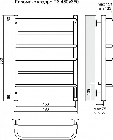 Terminus Полотенцесушитель электрический Евромикс квадро П6 450х650 диммер справа