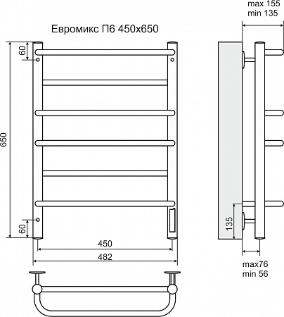 Terminus Полотенцесушитель электрический Евромикс П6 450х650 диммер справа