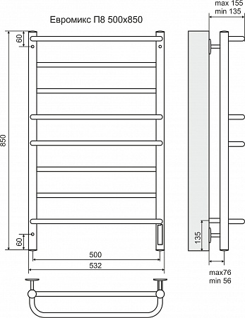 Terminus Полотенцесушитель электрический Евромикс П8 500х850 диммер справа