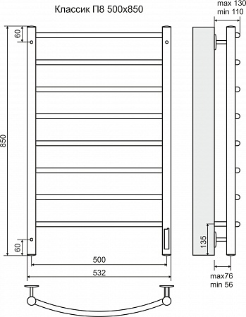 Terminus Полотенцесушитель электрический Классик П8 500х850 диммер справа