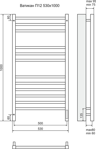 Terminus Полотенцесушитель электрический Ватикан П12 530x1000 хром