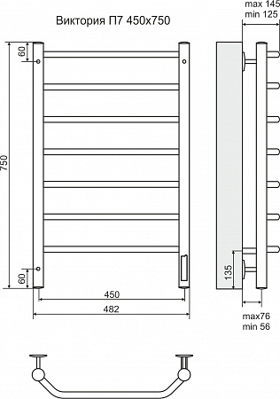 Terminus Полотенцесушитель электрический Виктория П7 450х750 диммер справа