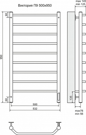 Terminus Полотенцесушитель электрический Виктория П9 500х950 диммер справа