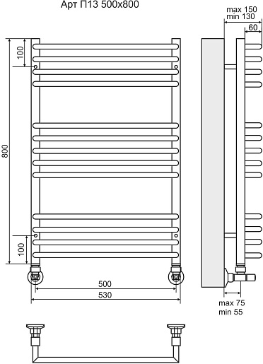 Terminus Полотенцесушитель водяной Арт П13 530x800 хром