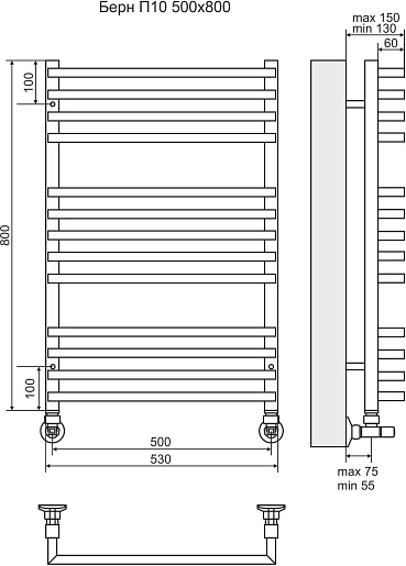Terminus Полотенцесушитель водяной Берн П13 530x800 хром