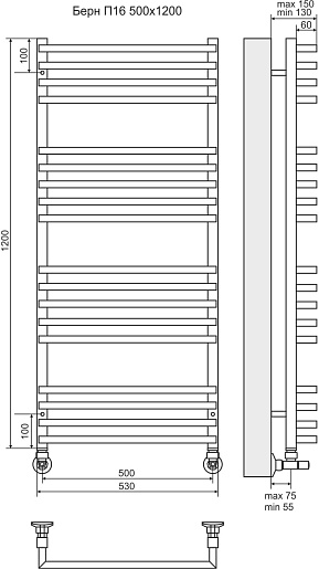 Terminus Полотенцесушитель водяной Берн П18 530x1200 хром