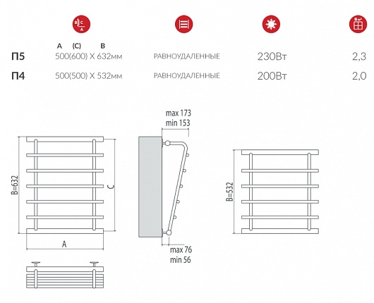 Terminus Полотенцесушитель водяной Каскад П4 с боковым подключением