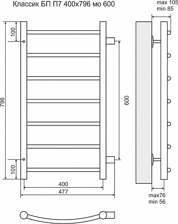 Terminus Полотенцесушитель водяной Классик П7 400х796-600 боковое подключение