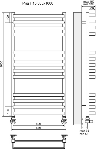 Terminus Полотенцесушитель водяной Рид П13 530x1000 хром