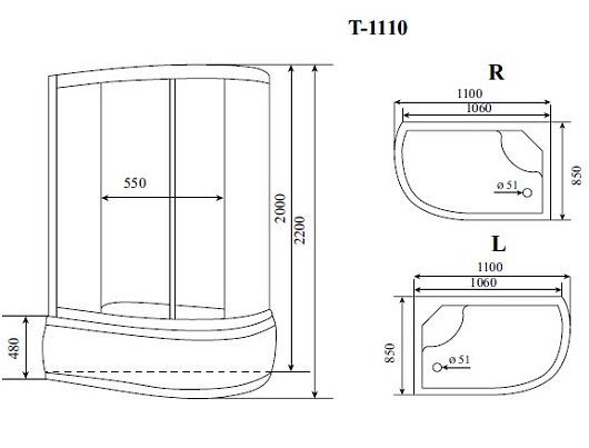 Душевая кабина правосторонняя - арт. T-1110 P R