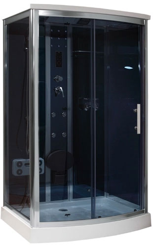 Кроме традиционных ручного и тропического душа кабина может предложить гидромассаж для спины на 6 точек, массажёр спины и удобное откидное сиденье, которое может полностью расслабиться во время проведения водных процедур. Допустимая нагрузка – не более 150 килограмм. Однорычажный смеситель работает в четырёх режимах.