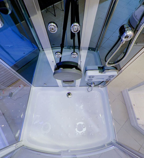 Установлены верхняя и боковая подсветка, радио, вентиляция. Управление функциями – сенсорное.- Акриловый поддон h - 15 см. с сифоном и усиленным каркасом.