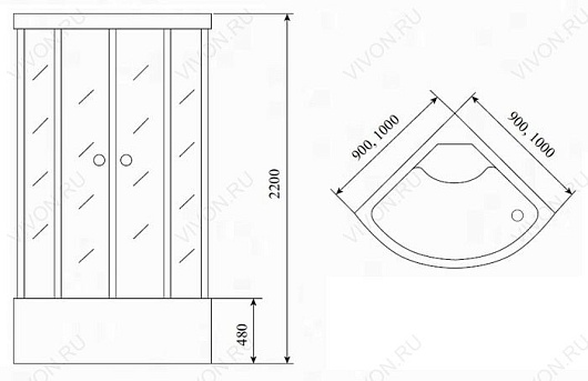 Габариты модели составляют 100х100х220 сантиметров. Хромированный профиль из анодированного алюминия обеспечивает непревзойдённую стойкость. Задняя стенка – акриловая, армированная, поэтому способна выдержать значительную нагрузку. Прочное стекло в 6 миллиметров толщиной не боится физического воздействия и способно устоять даже перед мощными ударами.