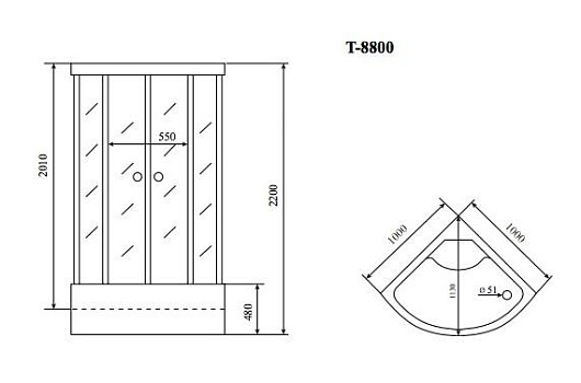 T-8800 C – прочная душевая кабина из серии Comfort, способная выдержать многолетнюю активную эксплуатацию. Акриловый поддон высотой 46 сантиметров обладает специальным усиленным каркасом на основе стекловолокна, центральная панель изготовлена из нержавеющей стали, а сам профиль кабины – из анодированного алюминия с хромовым покрытием (таким же, как у ручек и роликов раздвижных дверец).