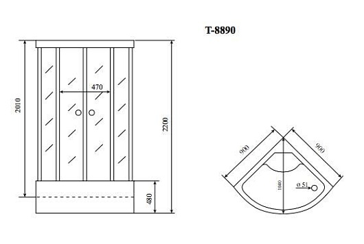 - Акриловый поддон на усиленном каркасе армирован стекловолокном, высота 48 см.