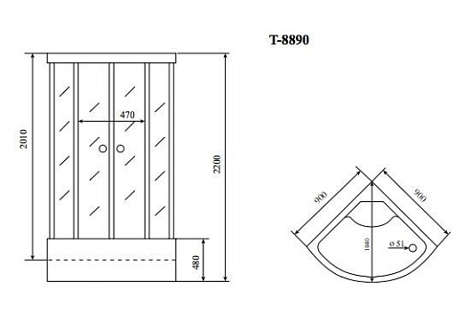 - Акриловый поддон на усиленном каркасе армирован стекловолокном, высота 48 см.