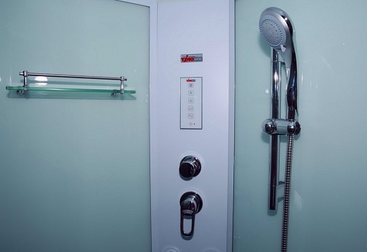 TE-0720 R – правосторонняя душевая кабина ассиметричной формы с габаритами 120х80х215 сантиметров. В этой модели всё продумано для приёма душа с удовольствием: однорычажный смеситель, работающий в трёх режимах, верхний душ, массажная лейка и шеститочечный гидромассаж. Высокий акриловый поддон (42 сантиметра) можно использовать для ножных ванн или педикюра.