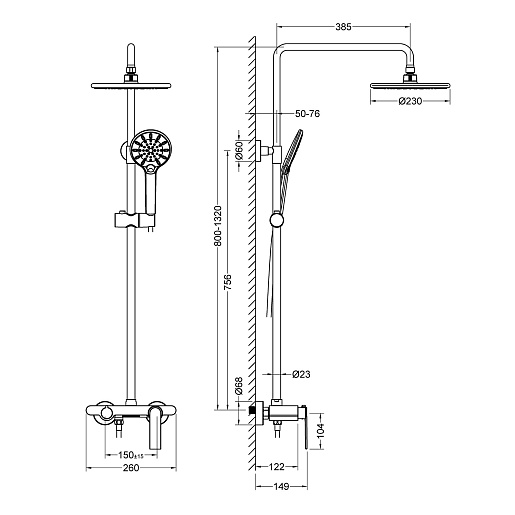 Лейка, шланг, штанга, верхний душ, крепление