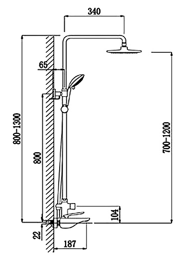 Смеситель, лейка, шланг, штанга, верхний душ, крепление
