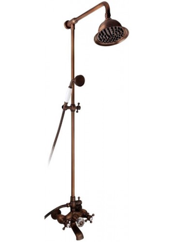 - комплектация: смеситель, шланг, лейка, штанга, верхний душ, крепление к стене