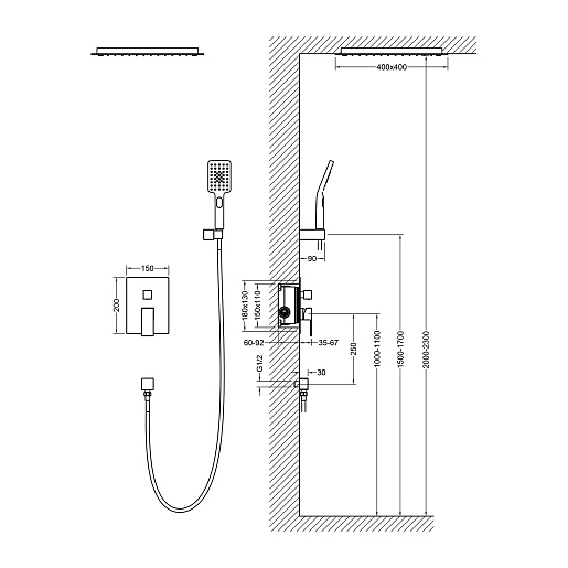 Верхний душ, ручной душ, шланг