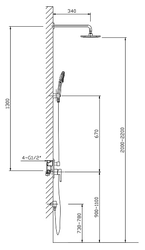 Смеситель, лейка, шланг, штанга, верхний душ, крепление