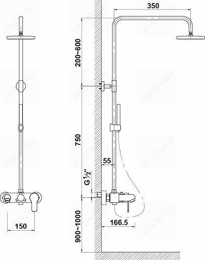 - 3-режимная система: верхний душ, душевая лейка, смеситель