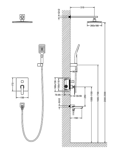 Комплектация:Смеситель скрытого монтажа с монтажной коробкой - 1 шт.