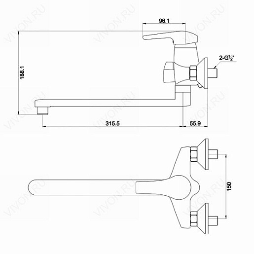- излив 315,5 мм