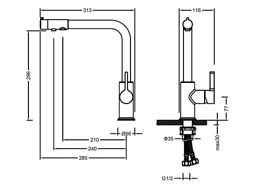 - гибкая подводка G1/2''