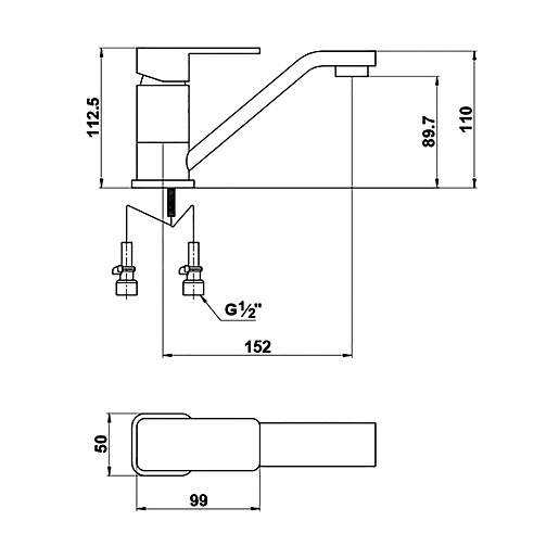 - длина излива 152 мм.
