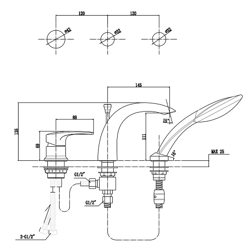 - монтаж на три отверстие