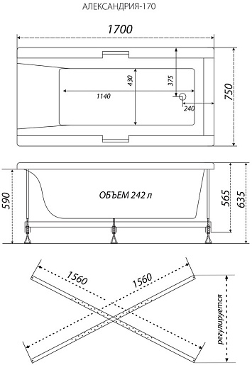 Triton Акриловая ванна Алекса 170x75