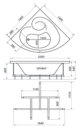 Эрика – акриловая ванна в угловом исполнении. Подобная форма обладает рядом преимуществ, делающих приобретение оправданным: она обладает оригинальным дизайном, обеспечивая при этом значительно больше полезного пространства, экономя занимаемую площадь в помещении. Судите сами: длина и ширина этой модели составляют 140 сантиметров, при этом рабочая длина чаши достигает 200 сантиметров!