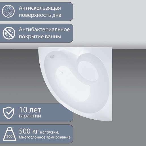 Толщина акрилового покрытия ванны в 5 миллиметров обеспечивает высочайшую прочность и долговечность: производитель даёт гарантию на купленное изделие 10 лет.Производитель: