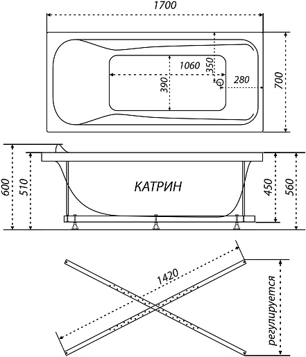 Ванна Катрин Экстра от российского производителя Triton обладает оптимальными размерами и достаточной глубиной. Габариты ванны – 170 на 70 на 45 сантиметров, с ножками высота достигает 60 сантиметров. Ванна вмещает до 220 литров: водные процедуры с полным погружением в процесс обеспечены!