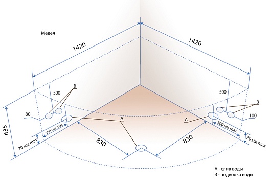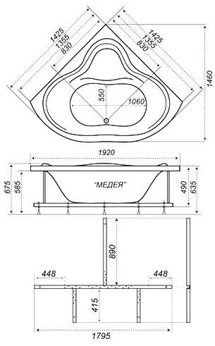 Медея – угловая акриловая ванна российского производства. Её форма позволяет эффективно использовать пространство ванной комнаты, предоставляя пользователю прежний функционал. Соотношение сторон модели составляет 143 на 143 сантиметра при глубине 35 сантиметров. Полезная длина чаши ванны – 192 сантиметра. Высота на каркасе достигает 63,5 см.